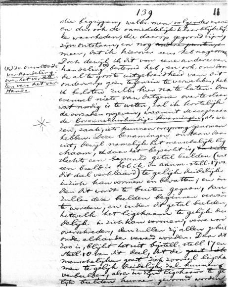 die begrippen, welke men volgende noemt, en dus ook de onmiddelijk klaarblijkelijke waarheden, die daarop gegrond zijn, zijn ontstaan, en nog meer, dat ik hierover eens heb nagevorscht. Doch dewijl ik dit voor eene andere verhandeling (*) bestemd heb, en ook om door de al te groote uitgebreidheid van dit onderwerp geen tegenzin te verwekken, heb ik besloten zulks hier na te laten. Om evenwel niets van datgene over te slaan, wat noodig is te weten, zal ik kortelijk de oorzaken opgeven, waaruit de zoogenaamde bovennatuurlijke benamingen, als wezen, zaak, iets hunnen oorsprong genomen hebben. Deze benamingen ontstaan daaruit, dewijl namelijk het menschelijk ligchaam, daar het beperkt is, slechts een bepaald getal beelden (wat een beeld is heb ik in aanm. stell. 17 van dit deel verklaard) te gelijk duidelijk in zich kan vormen en bevatten; en indien dit wordt te buiten gegaan, dan zullen deze beelden beginnen verward te worden, en indien dit getal beelden, hetwelk het ligchaam te gelijk duidelijk in zich kan vormen, verre wordt overschreden, dan zullen zij allen geheel onder elkander verward worden. Daar dit zoo is, blijkt het uit bijstell. stell. 17 en stell. 18 van dit deel, dat de menschelijke geest zich zooveel ligchamen te gelijk duidelijk zal kunnen verbeelden, als er beelden te gelijk in zijn ligchaam kunnen gevormd worden. (*) De onvoltooide Verhandeling over het verbeteren van het verstand. aantal woorden: 230 |