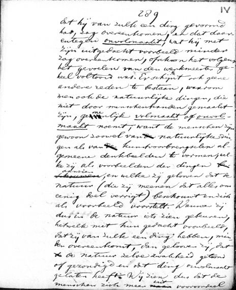 dat hij van zulk een ding gevormd had, zag overeenkomen, en dat daarentegen onvolmaakt, wat hij met zijn uitgedacht voorbeeld minder zag overeenkomen, ofschoon het volgens het gevoelen van den werkmeester geheel voltooid was. Er schijnt ook geene andere reden te bestaan, waarom men ook de natuurlijke dingen, die niet door menschenhanden gemaakt zijn, gemeenlijk volmaakt of onvolmaakt noemt; want de menschen zijn gewoon zoowel van natuurlijke dingen als van kunstvoortbrengselen algemeene denkbeelden te vormen, welke zij als voorbeelden der dingen aanzien, en welke zij gelooven dat de natuur (die zij meenen dat alles om eenig doel verrigt) beschouwt en zich als voorbeeld voorstelt. Wanneer zij dus in de natuur iets zien gebeuren, hetwelk met hun gedacht voorbeeld, dat zij van zulk een ding hebben, minder overeenkomt, dan gelooven zij, dat de natuur zelve zwakheid getoond of gezondigd en dat ding onvolmaakt gelaten heeft. Wij zien dus dat de menschen zich meer uit vooroordeel >> aantal woorden: 156 |