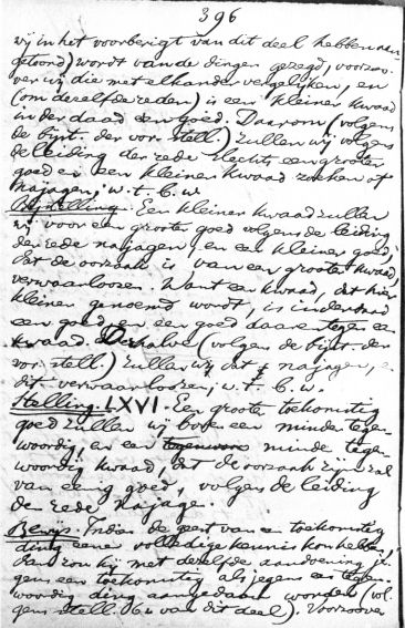 wij in het voorberigt van dit deel hebben aangetoond) wordt van de dingen gezegd, voorzoover wij die met elkander vergelijken, en (om dezelfde reden) is een kleiner kwaad inderdaad een goed. Daarom (volgens de bijst. der vor. stell.) zullen wij volgens de leiding der rede slechts een grooter goed en een kleiner kwaad zoeken of najagen; w.t.b.w. Bijstelling. Een kleiner kwaad zullen wij voor een grooter goed volgens de leiding der rede najagen, en een kleiner goed, dat de oorzaak is van een grooter kwaad, verwaarloozen. Want een kwaad, dat hier kleiner genoemd wordt, is inderdaad een goed, en een goed daarentegen een kwaad. Derhalve (volgens de bijst. der vor. stell.) zullen wij dat najagen, en dit verwaarloozen; w.t.b.w. Stelling LXVI. Een grooter toekomstig goed zullen wij boven een minder tegenwoordig, en een minder tegenwoordig kwaad, dat de oorzaak zijn zal van eenig goed, volgens de leiding der rede najagen. Bewijs. Indien de geest van een toekomstig ding eene volledige kennis kon hebben, dan zou hij met dezelfde aandoening jegens een toekomstig als jegens een tegenwoordig ding aangedaan worden (volgens stell. 62 van dit deel). Voorzoover >> aantal woorden: 188 |