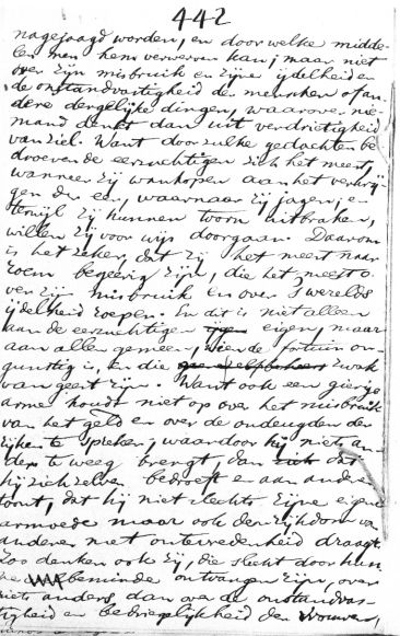 nagejaagd worden, en door welke middelen men hem verwerven kan; maar niet over zijn misbruik en zijne ijdelheid en de onstandvastigheid der menschen of andere dergelijke dingen, waarover niemand denkt dan uit verdrietigheid van ziel. Want door zulke gedachten bedroeven de eerzuchtigen zich het meest, wanneer zij wanhopen aan het verkrijgen der eer, waarnaar zij jagen; en terwijl zij hunnen toorn uitbraken, willen zij voor wijs doorgaan. Daarom is het zeker, dat zij het meest naar roem begeerig zijn, die het meest over zijn misbruik en over 's werelds ijdelheid roepen. En dit is niet alleen aan de eerzuchtigen eigen, maar aan allen gemeen, wien de fortuin ongunstig is, en die zwak van geest zijn. Want ook een gierige arme houdt niet op over het misbruik van het geld en over de ondeugden der rijken te spreken; waardoor hij niets anders te weeg brengt, dan dat hij zichzelven bedroeft en aan anderen toont, dat hij niet slechts zijne eigene armoede maar ook den rijkdom van anderen met ontevredenheid draagt. Zoo denken ook zij, die slecht door hunne beminde ontvangen zijn, over niets anders dan over de onstandvastigheid en bedriegelijkheid der vrouwen, >> aantal woorden: 192 |